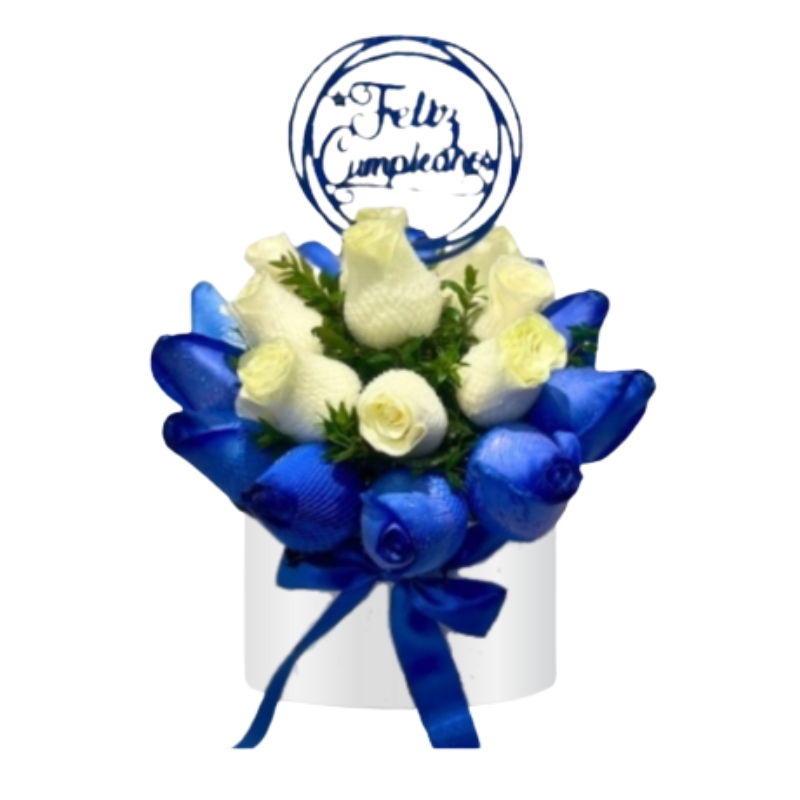 - Hermoso box con 20 rosas entre blancas y azules.